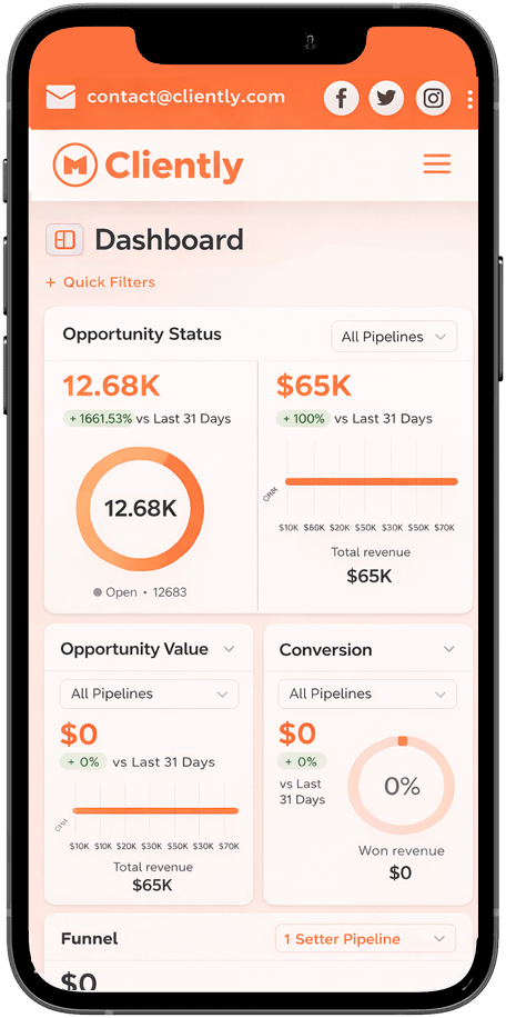 Cliently makes it easy to build, edit, and optimize high-converting landing pages and multi-step funnels without code. Create pages for ads, services, bookings, and promotions, then connect each step with forms, calendars, and automation-ready actions. From first click to final conversion, Cliently gives you full control over every page, step, and edit. So, your funnels evolve as your business grows.